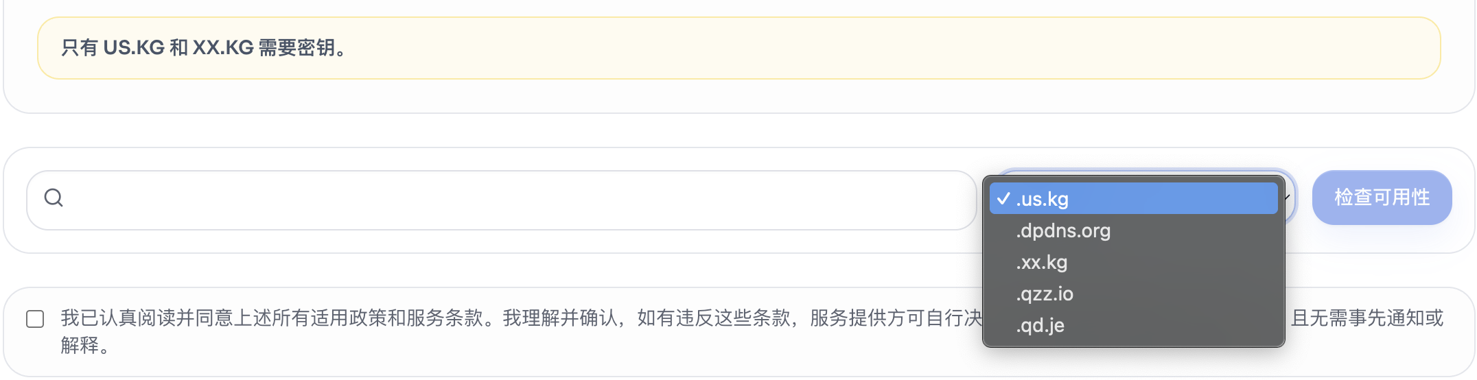【只有US.KG和XX.KG需要密钥】其它域名可直接注册